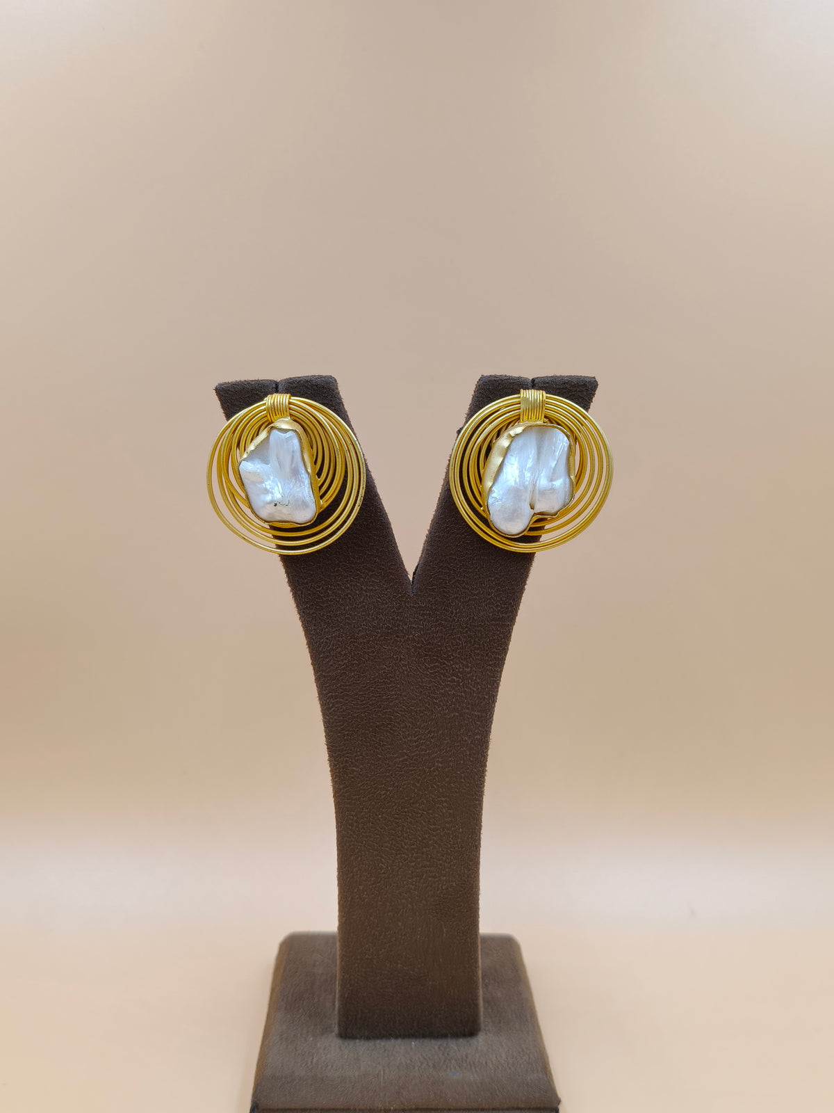 Step into effortless elegance with the Orbit Pearl Earrings — where organic beauty meets modern design. These captivating earrings feature raw baroque pearls nestled within hand-formed concentric gold rings, symbolizing balance, movement, and timeless style. Each pearl is naturally unique, adding an element of individuality to every pair. Lightweight yet impactful, they are perfect for both elevated everyday wear and statement moments.