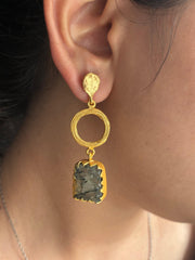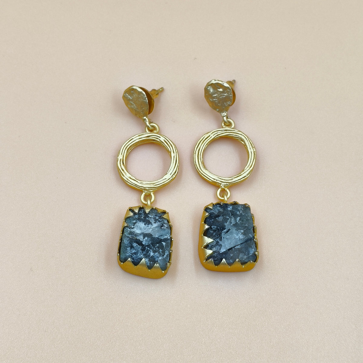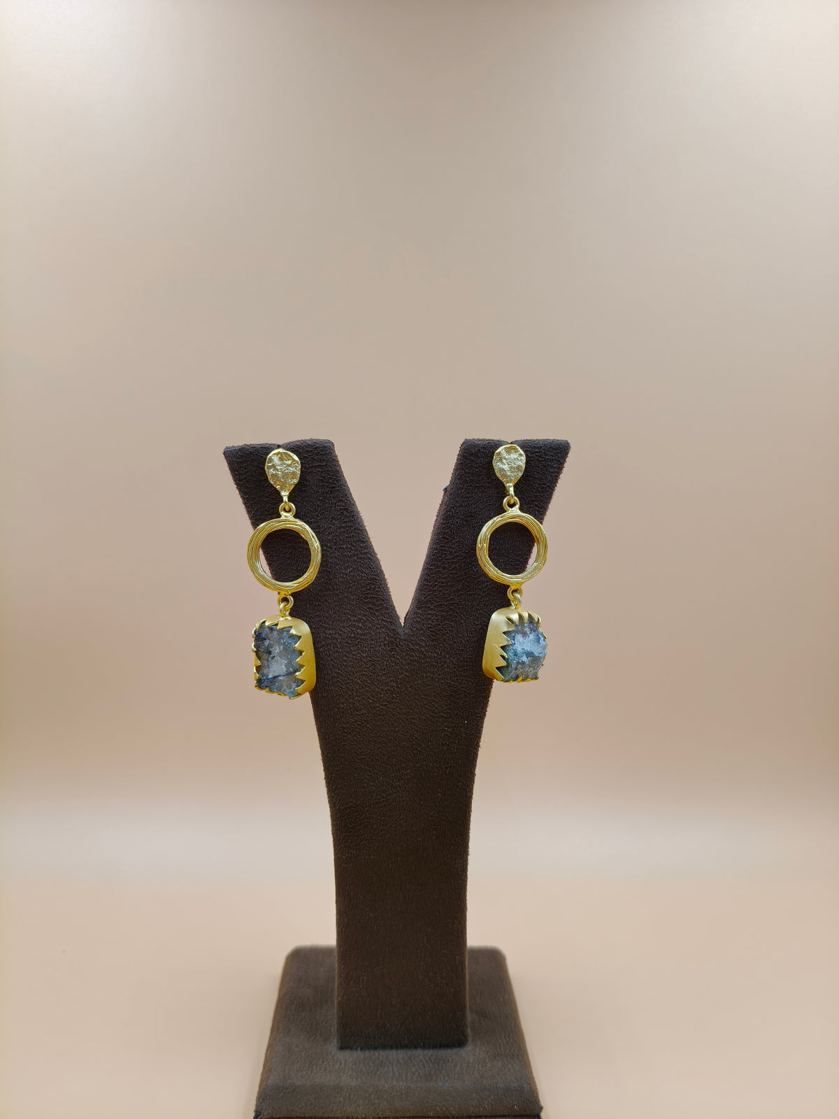 Let your style eclipse the ordinary with Midnight Eclipse. These handcrafted earrings feature deep blue raw stones set in textured gold frames, exuding cosmic charm and effortless elegance. A statement piece for the bold at heart — perfect for evening glam or an artful day look.
