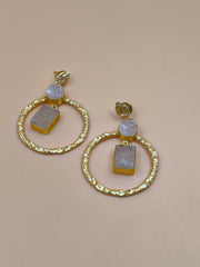 Elevate your style with the timeless charm of our Lunar Glow Hoops. Crafted with textured gold-plated hoops and adorned with natural white druzy stones, these earrings radiate a subtle sparkle that feels both modern and mystical.