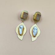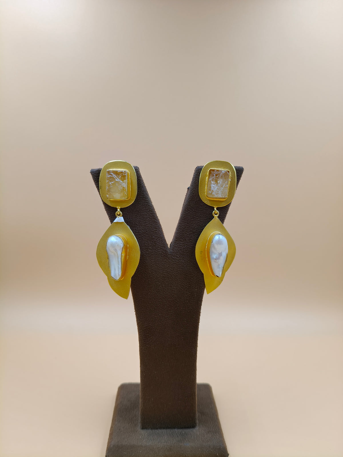 Embrace raw beauty with Golden Leafdrop — a statement earring set inspired by nature’s organic forms. Featuring textured golden leaves, raw-cut stones, and luminous baroque pearls, these earrings are perfect for the modern muse who appreciates art, elegance, and earth-born charm.