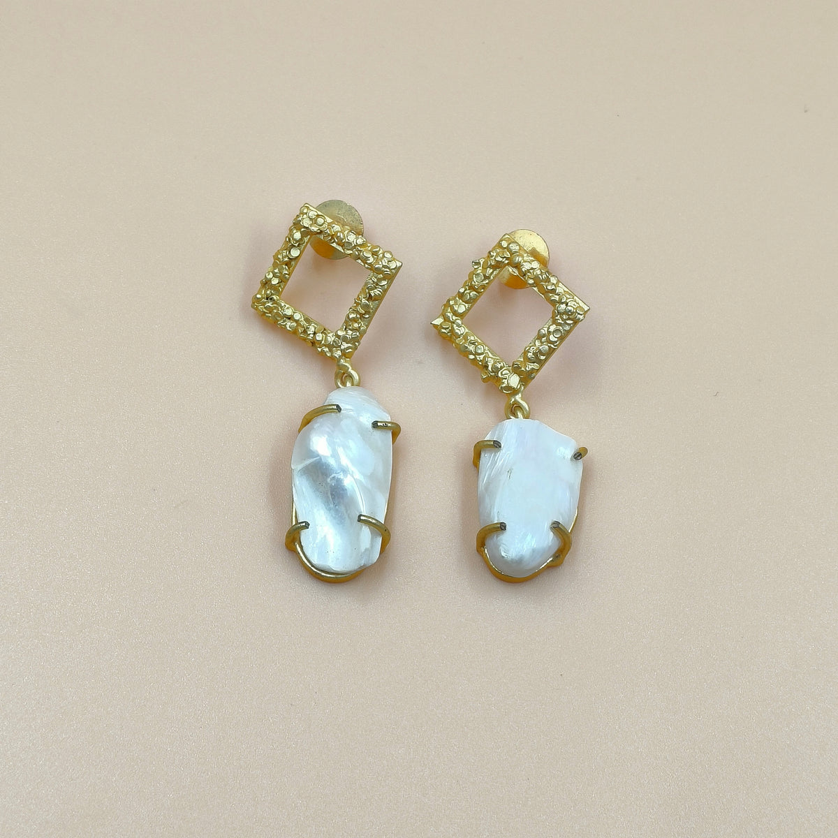 Elevate your style with our Luminous Pearl Elegance Earrings, where timeless beauty meets modern sophistication. Each earring features a unique, organically shaped freshwater pearl embraced by a delicately textured gold-tone frame, creating a stunning contrast that captures the light from every angle. Perfect for both everyday glamour and special occasions, these earrings are designed to make you shine effortlessly. Embrace elegance with a touch of natural allure — your new go-to statement accessory.