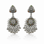 Oxidised Jhumka Earrings with Multicolor Stone Accents